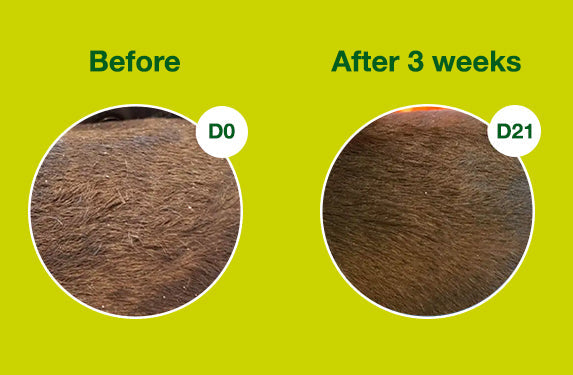 Similar to humans, pet dandruff results from an excess of dead skin flakes. Instead of being naturally eliminated, these dandruff particles become trapped in the pet's fur. DOUXO® S3 SEB products have undergone clinical testing, demonstrating their effectiveness in regulating flaky skin, with a noticeable reduction in flakes as soon as 7 days after starting to use the product.